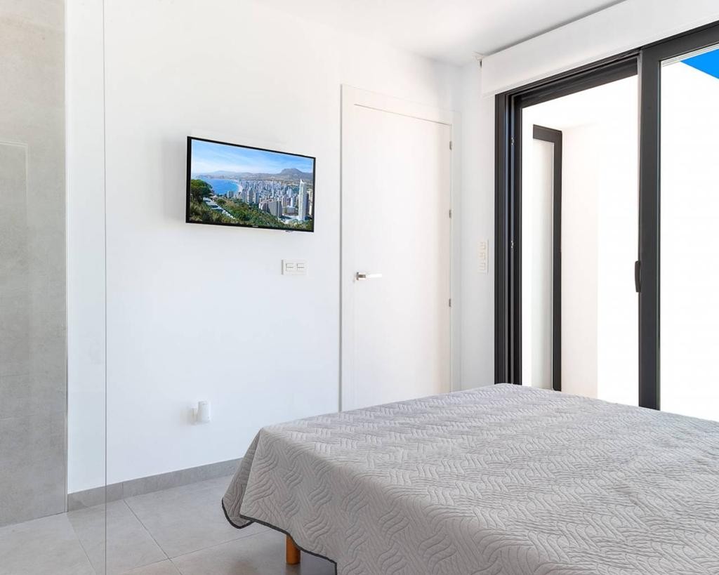 An East Facing, As New, Three Bedroom, Detached Villa with a Self contained Studio Apartment in Benijofar, which has it´s own access as well. Situated with the parkland bordering just a five—ten minute walk to the amenities Benijofar has to offer, including medical centre, school, bars, restaurants, McDonalds, shops, bank, supermarket, pharmacy and just a couple of minutes by car to a main chain supermarket, Quesada, Rojales and it´s La Marquesa Golf Course. The beaches along the coast can be reached in approximately ten minutes by car. This as new modern villa having a tourist licence, offers the opportunity of two excellent rental incomes, something that the current owner has made successful. The main villa offers bright open plan living; lounge/dining room with stairs leading up to the first floor; fitted kitchen with island unit and door leading out; utility room; family shower room; double bedroom with walk in wardrobe and sliding doors leading out to the pool area. On the first floor there are a further two double bedrooms with built-in wardrobes and en suite shower rooms, master with terrace; steps lead up to the private roof top solarium, where you can enjoy views across to the mountains. The garden is tiled with a private pool, BBQ area, car access. The self contained 70m2 studio apartment is accessed via another street, is open plan with a living area, fitted kitchen, open bedroom area and a shower room. The property benefits from ducted air con, the apartment having air con unit. This is totally, a one off opportunity not to be missed.