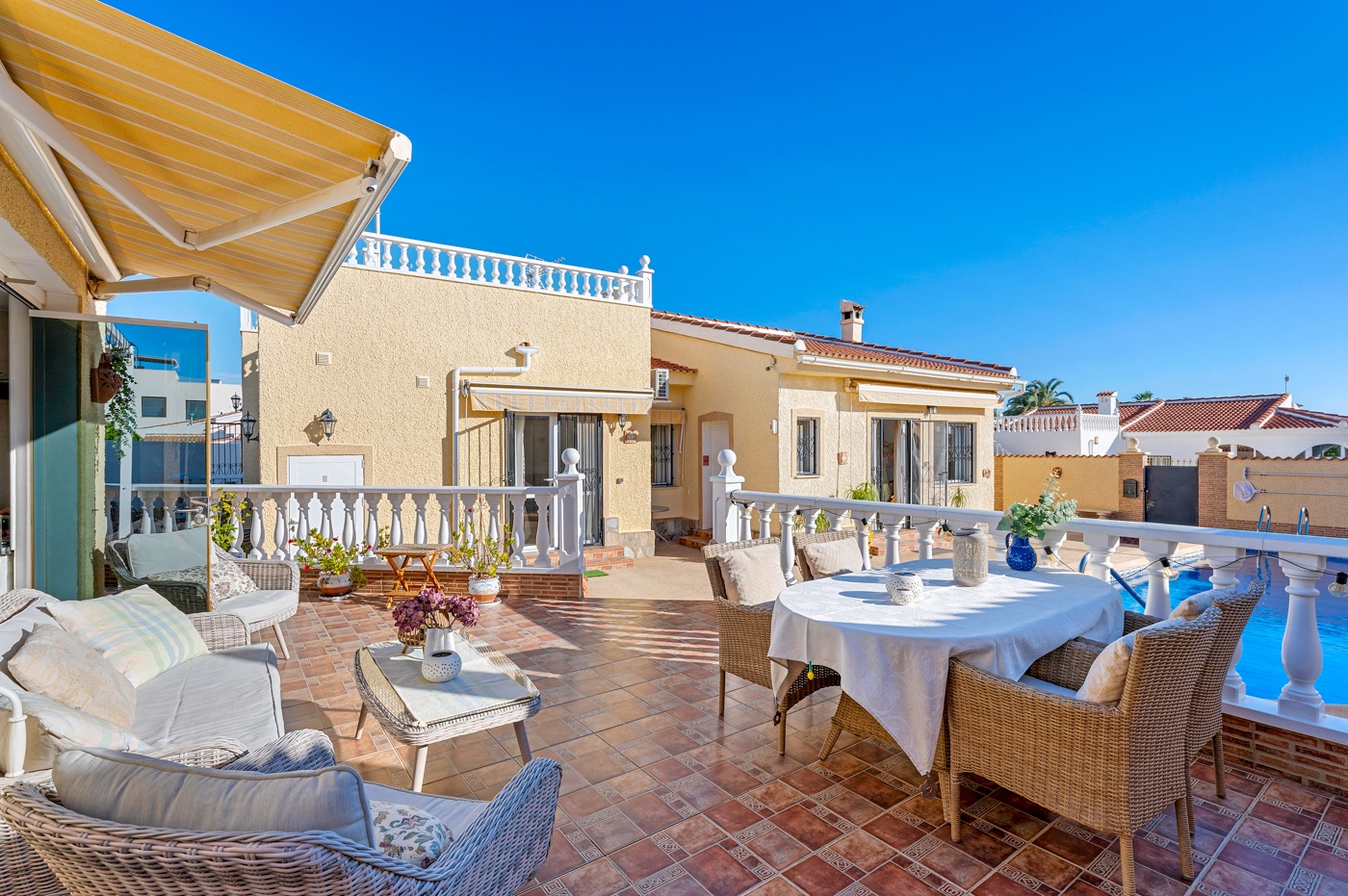 Set in one of the most prestigious areas of Ciudad Quesada, this beautifully reformed villa offers the perfect blend of modern comfort, privacy and Mediterranean outdoor living. Standing on a generous 587 m² fully tiled plot with fantastic views, the property is presented in excellent condition and ready to move into.