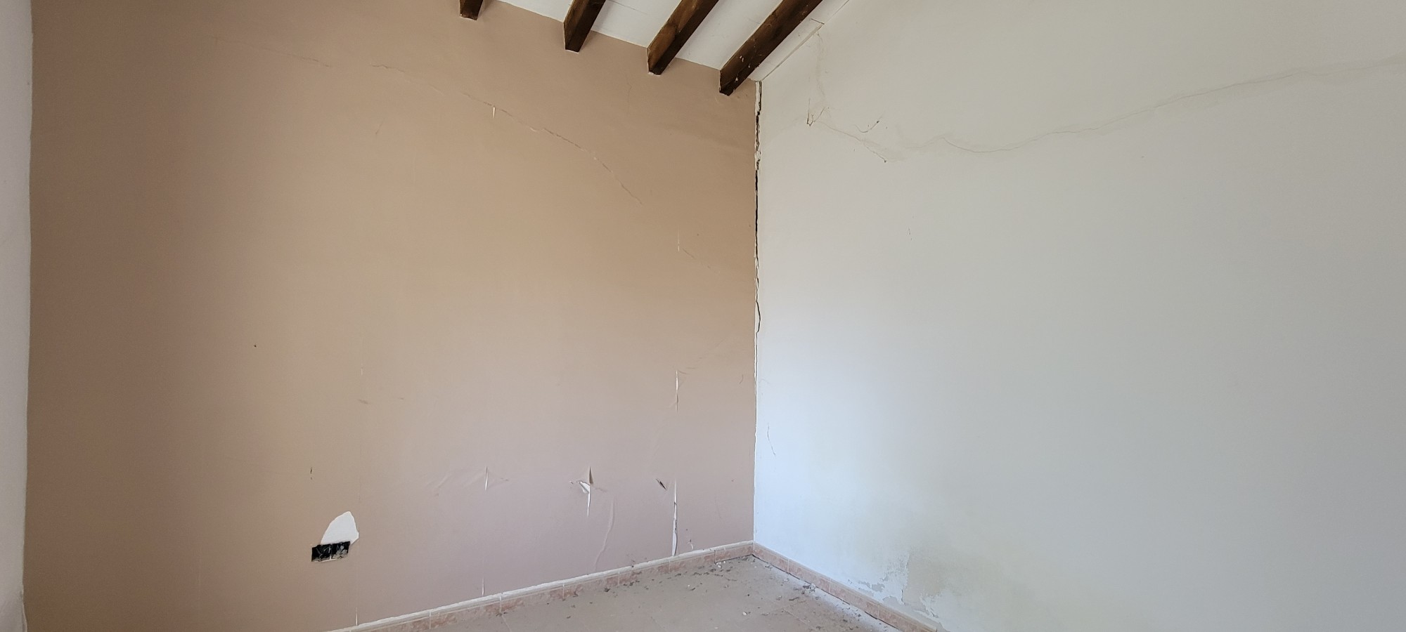 Finca – 2 bedrooms 1 bathroom. Open planned living – dining room, kitchen (without units), patio area outside the front. Comes with the wooden beams on the roof for the rustic look.