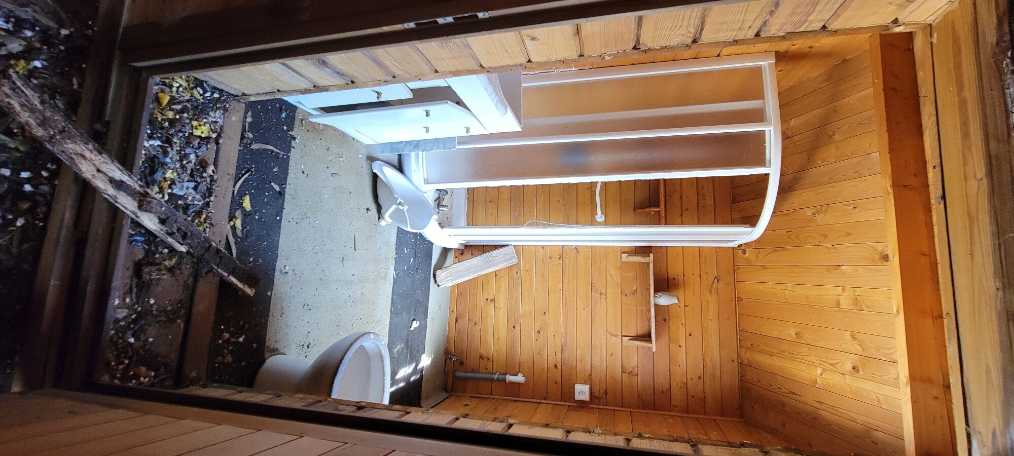 Solar panels would also be needed for electricity. This could be 12 panels with a backup generator at a quoted price of €14,000. All cables and plumbing are done within the properties. On site you have the Septic tank under the chalet, and Well at the rear of the garden for drinking water. There is an area for parking cars off the road, fenced in for security.