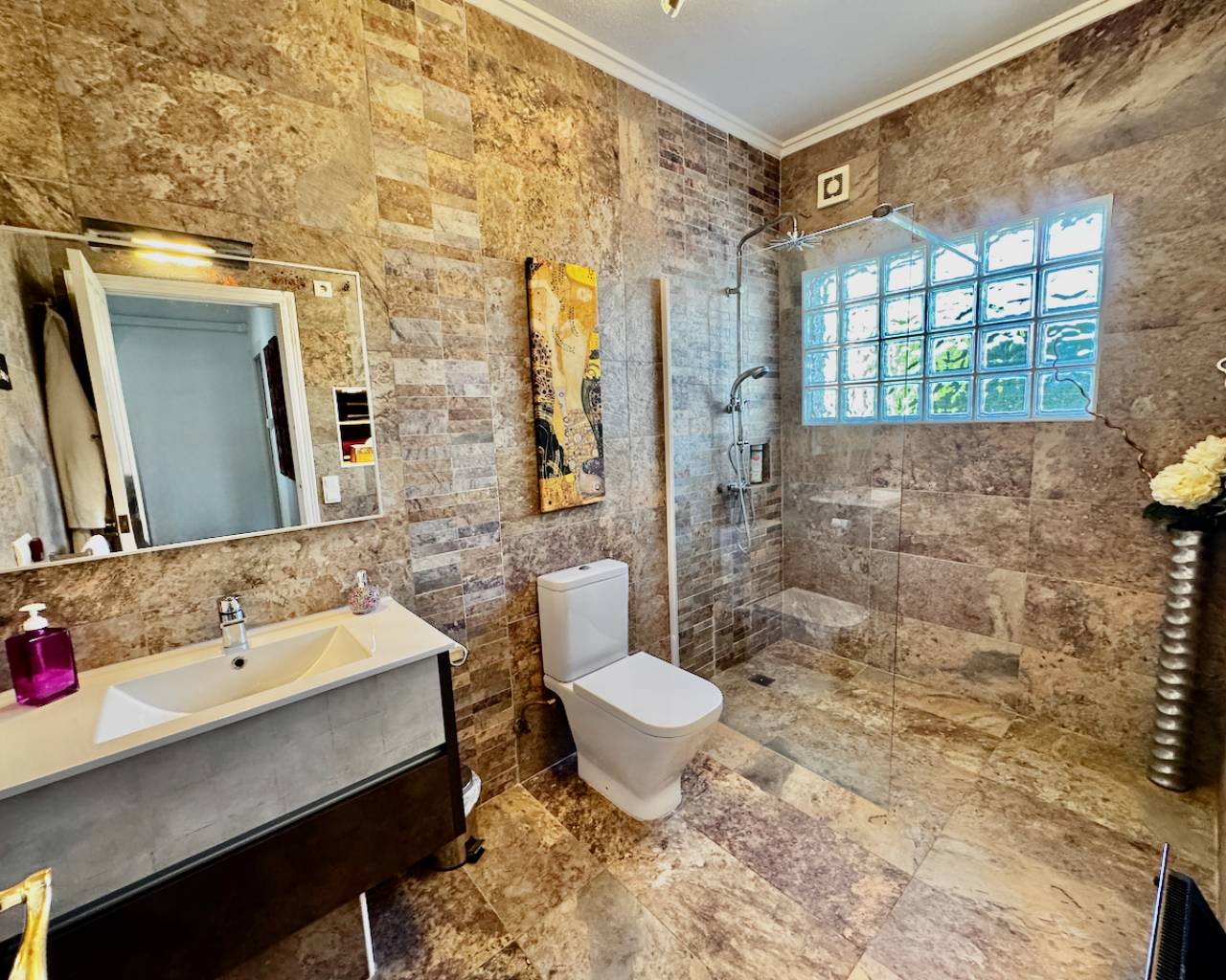 4 spacious bedrooms with fitted wardrobes, including a master ensuite3 modern bathrooms plus a guest toilet2 fully equipped kitchens — perfect for entertaining or multi-generational livingBright, open-plan living area with a cozy fireplace and air conditioning throughoutGlazed terrace showcasing panoramic pool views and abundant natural light all year roundPrivate swimming pool surrounded by sunbathing terraces and al fresco dining areasOff-road parking with carport and electric gated entrance for added security and convenience