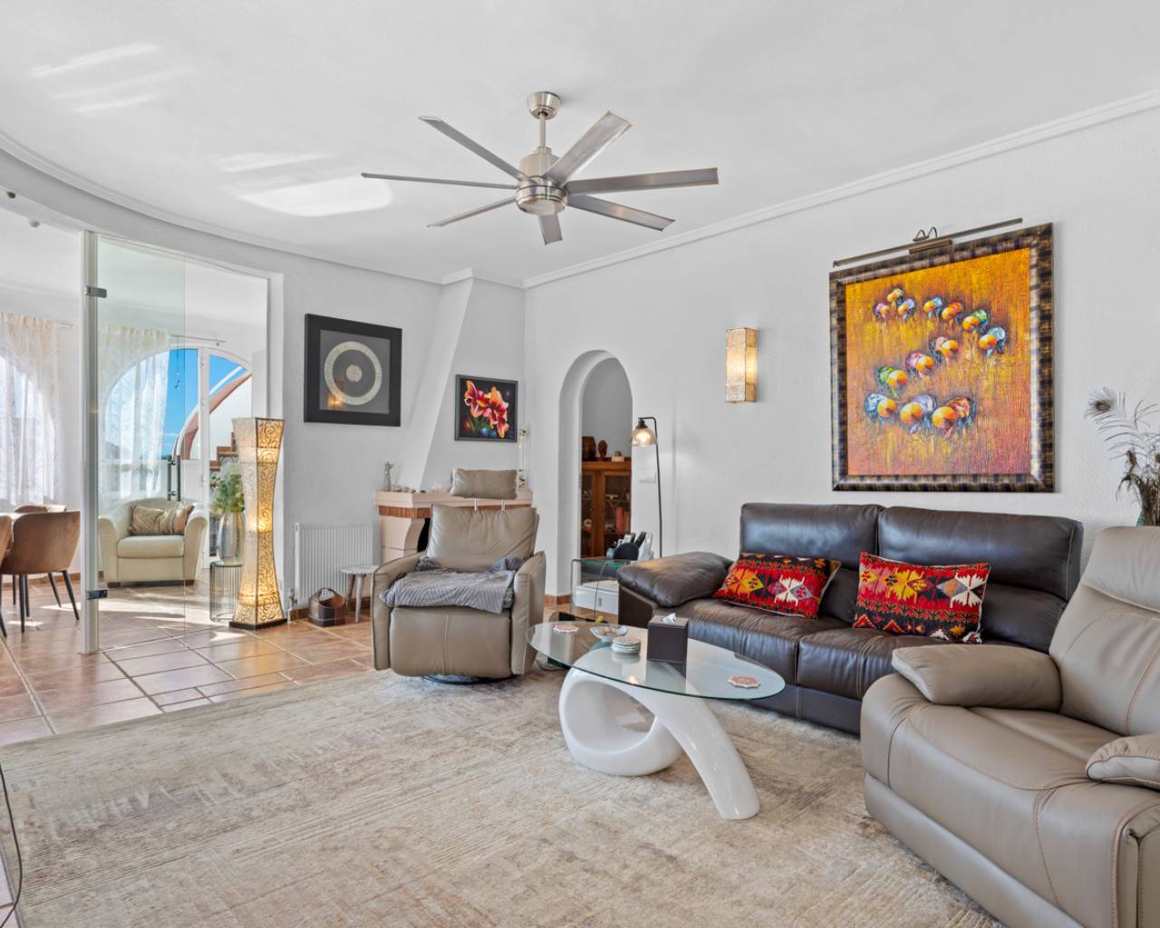 Built in 1990 and presented in excellent condition, this stunning 4-bedroom, 3-bathroom villa offers 200m² of beautifully maintained living space on a 520m² plot. Perfectly positioned south-facing, the home enjoys sunshine all day and panoramic views of the surrounding area — just 10 minutes from the beach and close to golf, shops, and restaurants.