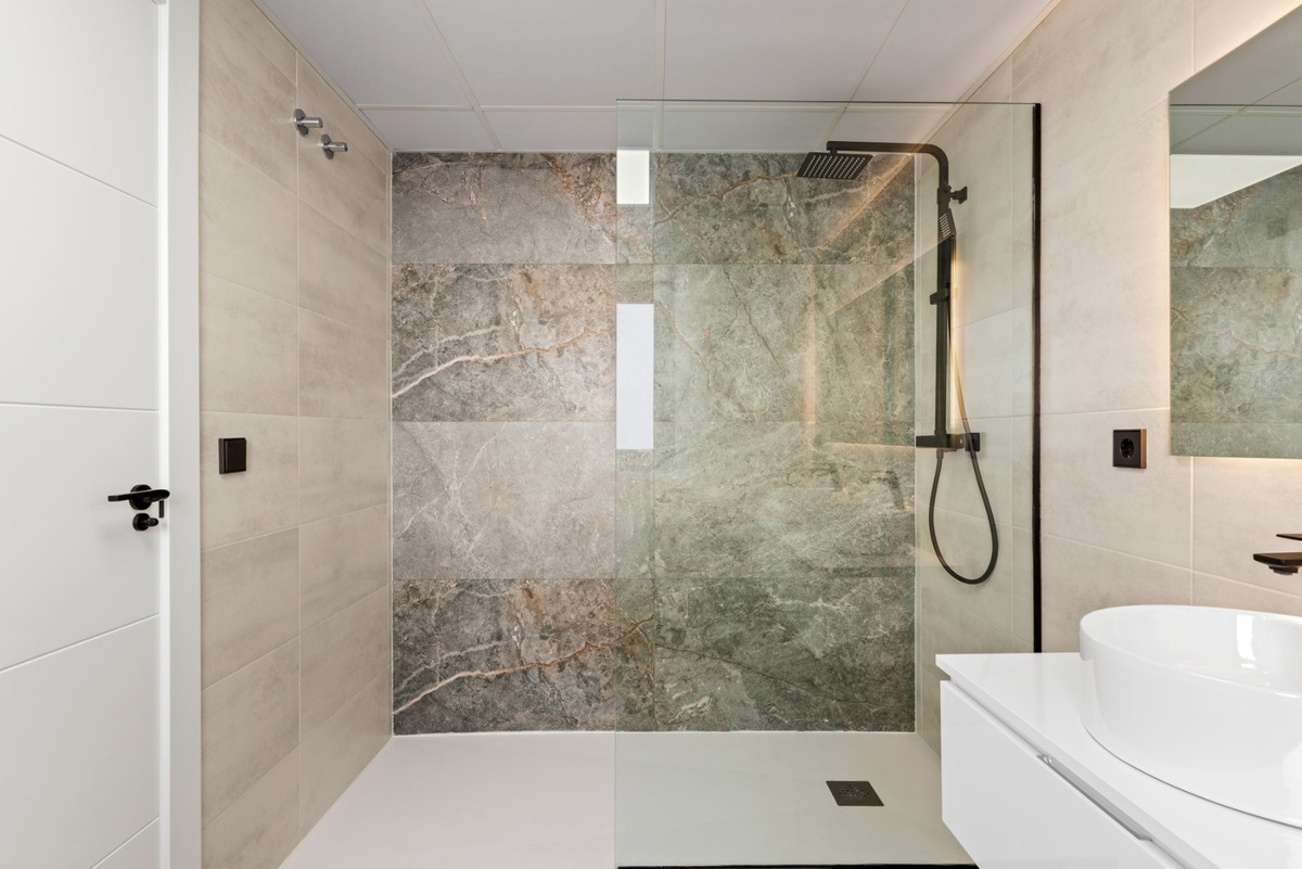 This East Facing, Four Bedroom, Renovated, Semi Detached Villa in Torre de la Horadada is located just a 3 minute walk to the beach, positioned one street behind the sea and promenade which leads you to the marina and a larger stretch of sandy coastline. Torre de la Horadada is a typically Spanish seaside town offering a variety of restaurants and café bars, while Pilar de la Horadada is just a couple of minutes' drive away. Orihuela Costa, La Zenia Boulevard shopping centre, and several golf courses can all be reached in approximately 15 minutes. Recently renovated to a high standard with a unique and stylish design, this impressive 121m2 villa is set over two floors and even enjoys sea views. The property offers a bright open plan living space that flows seamlessly to the exterior, along with a well fitted modern kitchen. A hallway leads to the stairs for the first floor, while the ground floor also features a double bedroom with double sliding glazed doors out to the garden, and a contemporary shower room. On the first floor, there are three further double bedrooms, including a spacious master with dressing area and an en suite shower room featuring a double vanity. Bedroom four benefits from its own private terrace, and there is also an additional modern family shower room. The 45m2 private solarium is laid with artificial grass and includes a brick-built area with sink — ideal for outdoor entertaining. The garden is tiled and partly laid with artificial grass, and offers off road parking, a private swimming pool, outdoor shower, and an extensive covered kitchen/work area. Additional extras include ducted air conditioning, an irrigation system, and a store room. An exceptional, fully renovated villa in a prime coastal location, perfect for enjoying modern Mediterranean living on the Costa Blanca South.