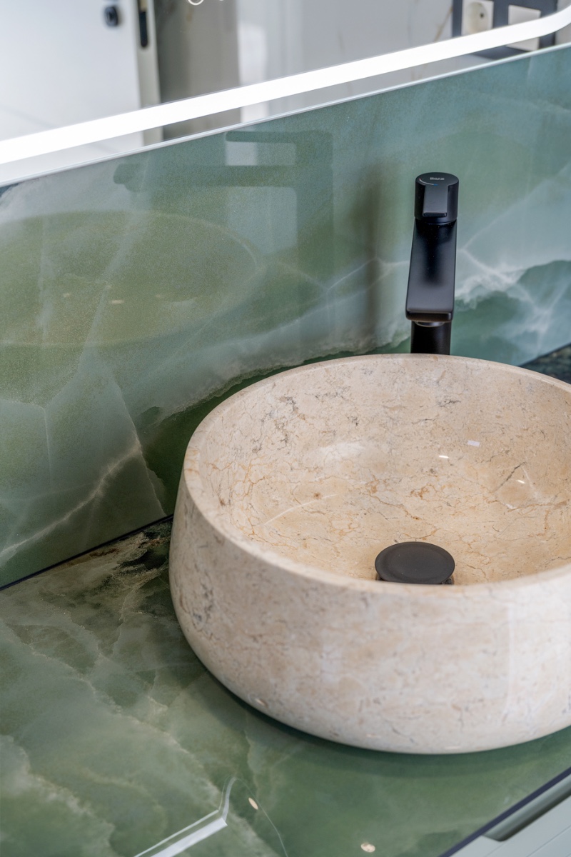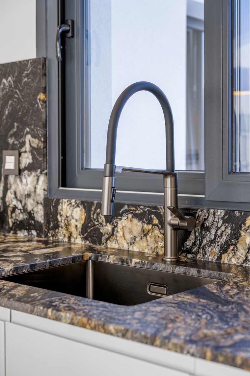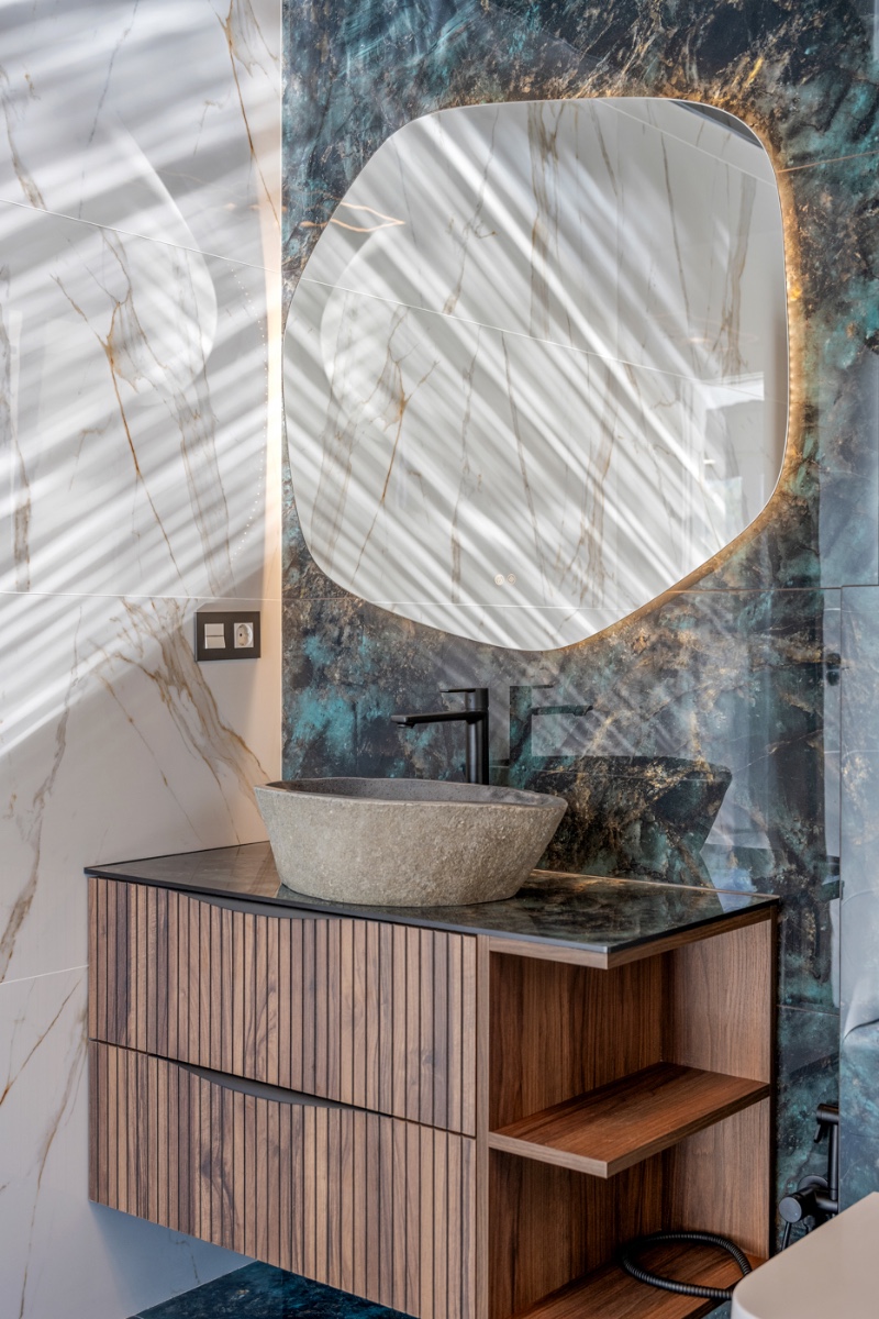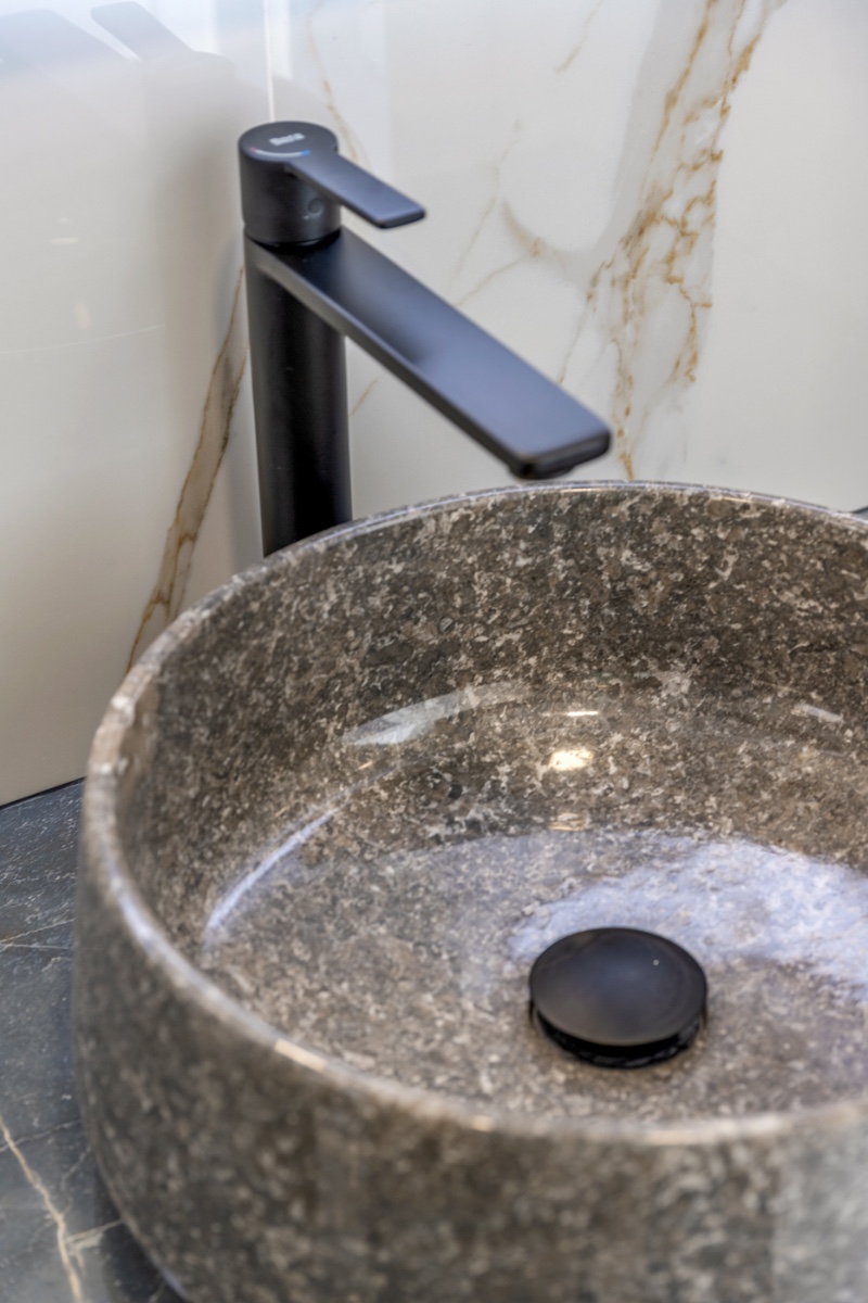 4 designer bathrooms, 3 of them en suite, equipped with high-end materials and an impeccable modern aesthetic.