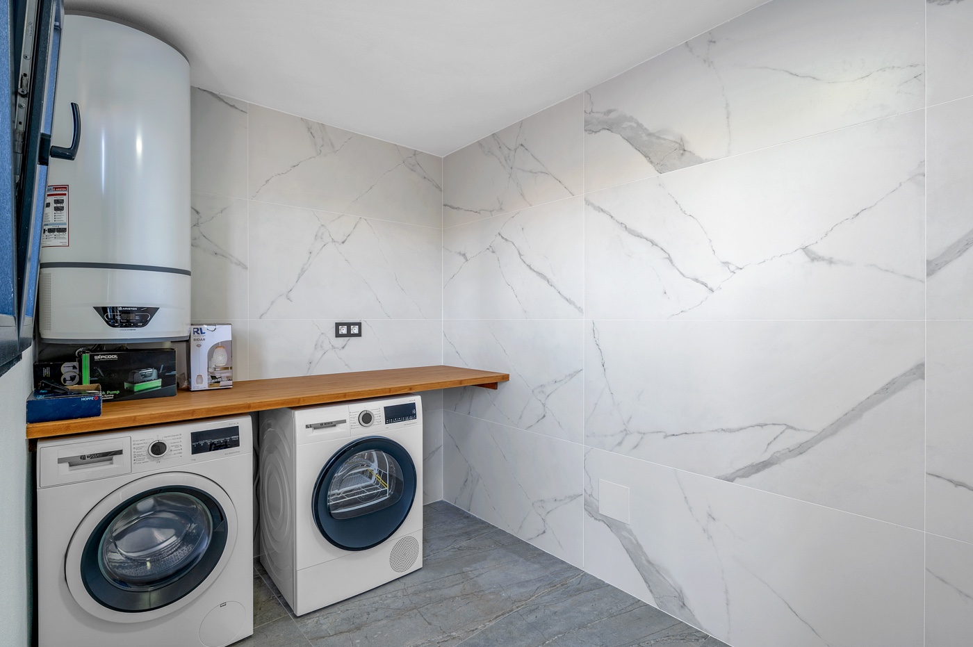 Large, separate laundry area, fully equipped with a washer and dryer.