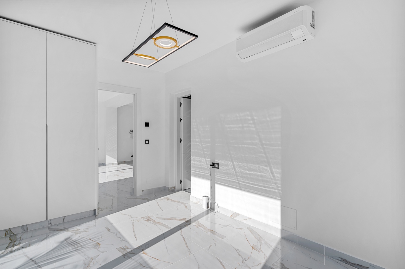 Integrated home automation and electric blinds for a smart living experience. Exclusive finishes: designer tiles, materials, and woodwork, blending elegance and functionality.