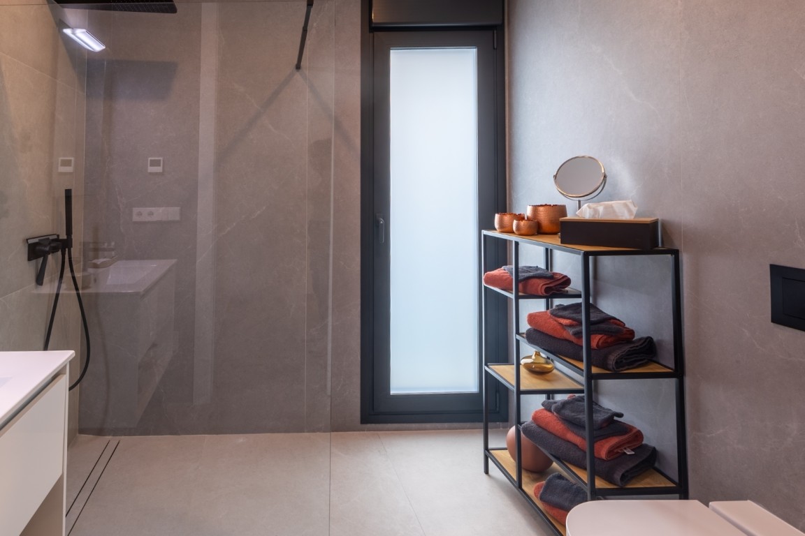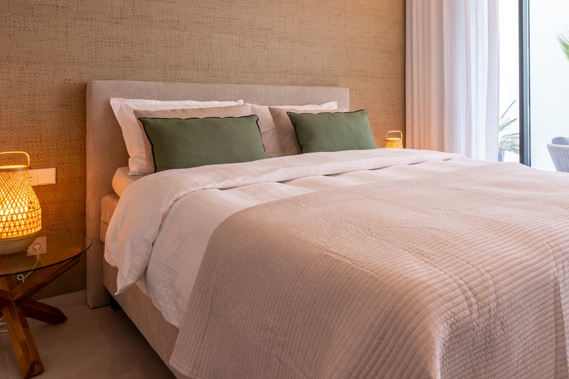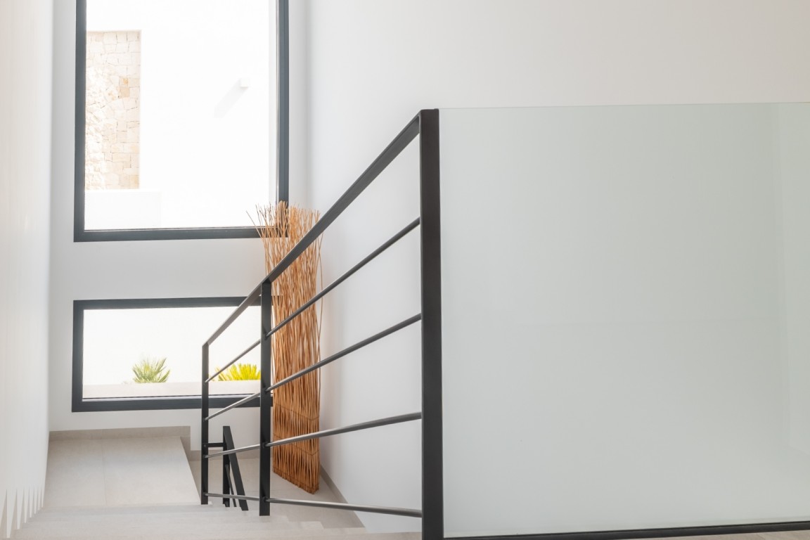 This villa has been finished to perfection and includes every modern comfort: air conditioning throughout, electric shutters, an electronic entrance gate, solar panels with battery for sustainable energy, as well as thoughtfully designed lighting and curtains in every room.