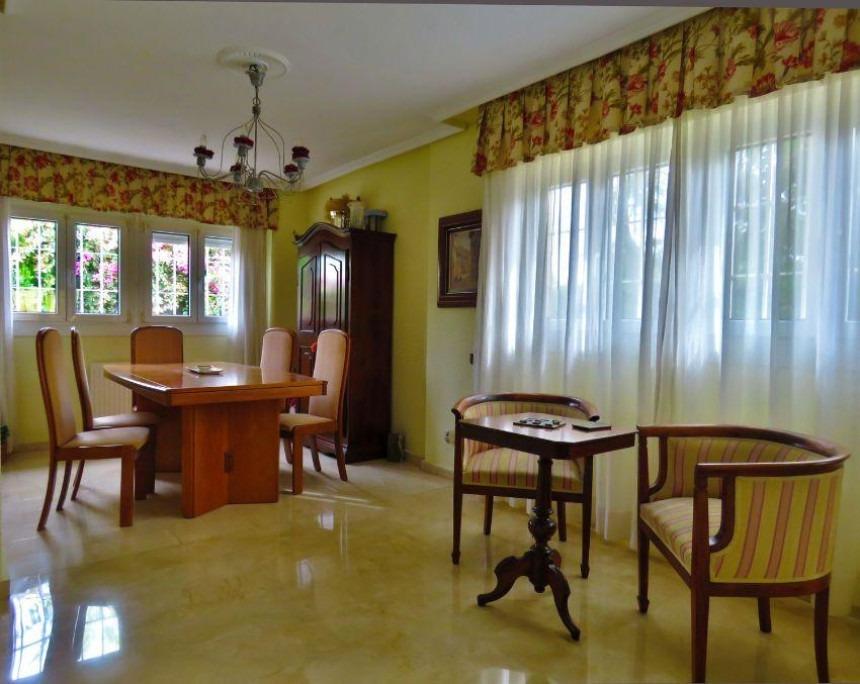 5 bedrooms, 3 bathrooms, 339m2 living area, 1000m2 fenced plot, garden, private pool, covered terrace, air condition, central heating, basement with garage