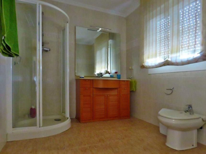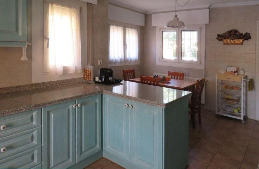 The house is distributed over 2 floors and a basement. On the ground floor with a hallway there is a large living room of 40m2, a study of about 15m2, a kitchen of 17m2, a pantry and 1 toilet. The 37m2 terrace is accessible from the kitchen and the study. On the first floor we find the master bedroom of 14m2 with full bathroom and dressing room, three other bedrooms and a full bathroom. The basement has a usable area of more than 50 m2, which can be converted into a small guest house and a 30m2 garage for two cars. In the garden is a private pool 10.5×4.5m with salt chlorination system, a barbecue area and a pavilion. There are also double glazed PVC tilt and turn windows, central heating, air conditioning in the rooms, water softener in the house and fiber optic internet.