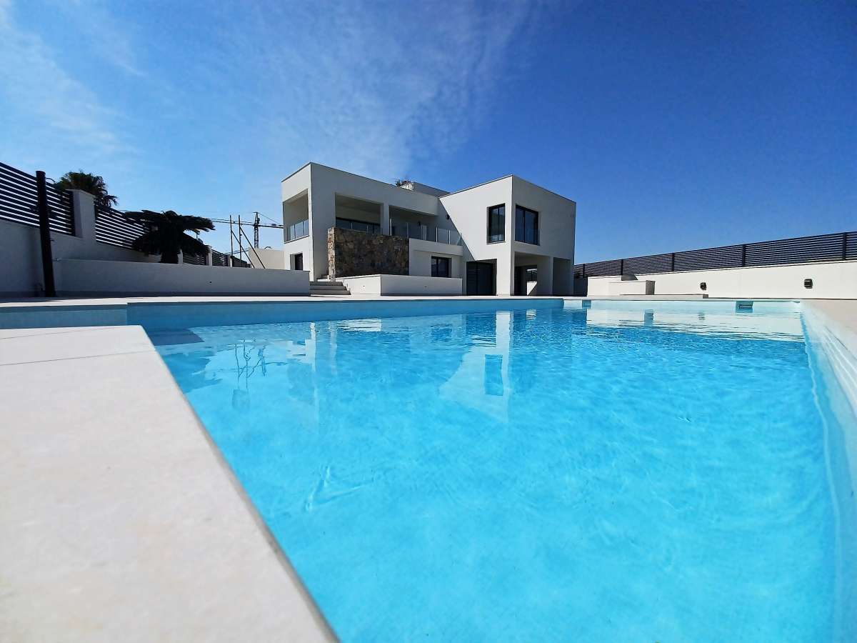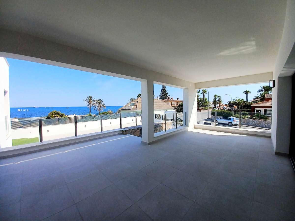 This beautiful villa is located in a unique natural enclave and is built with extraordinary materials. Large open spaces with lots of light flow seamlessly into each other forming a beautiful whole as well as with the outdoor spaces.The villa is located on a plot of 745m² and has a built area of 200m². The building has two floors and a large solarium with a breathtaking view of the sea. There are a total of 5 bedrooms and 3 bathrooms. Two bedrooms and a large bathroom are located on the ground floor. The other three bedrooms with two bathrooms are on the first floor. The master bedroom has an en-suite. On the ground floor there is also a large garage for two vehicles, a kitchen, a lounge and a terrace. A large private pool with chill-out area offers refreshment and relaxation. On the second floor there is an open kitchen and a large living / dining room with direct access to the large terrace with fantastic views of the sea and the surrounding area. There is also an internal staircase leading to the spacious rooftop solarium where you can enjoy the glorious sun.The location is perfect due to its proximity to the beach. You can easily get to the 3 best beaches of Torrevieja: La Veleta, Cala and Rocio del Mar. Torrevieja is 40 km from Alicante International Airport and 55 km from Murcia. The villa is close to all amenities such as hospitals, schools, stores and restaurants and the natural lagoon parks of La Mata and Torrevieja.