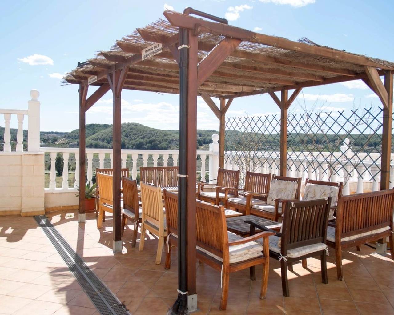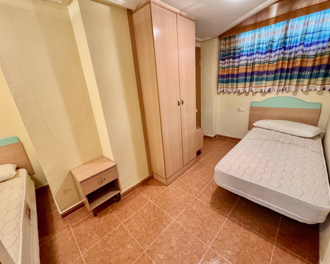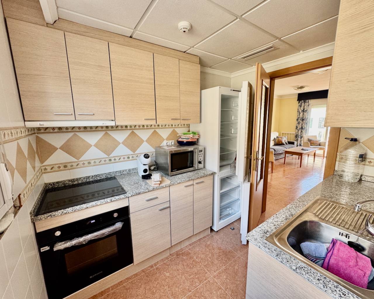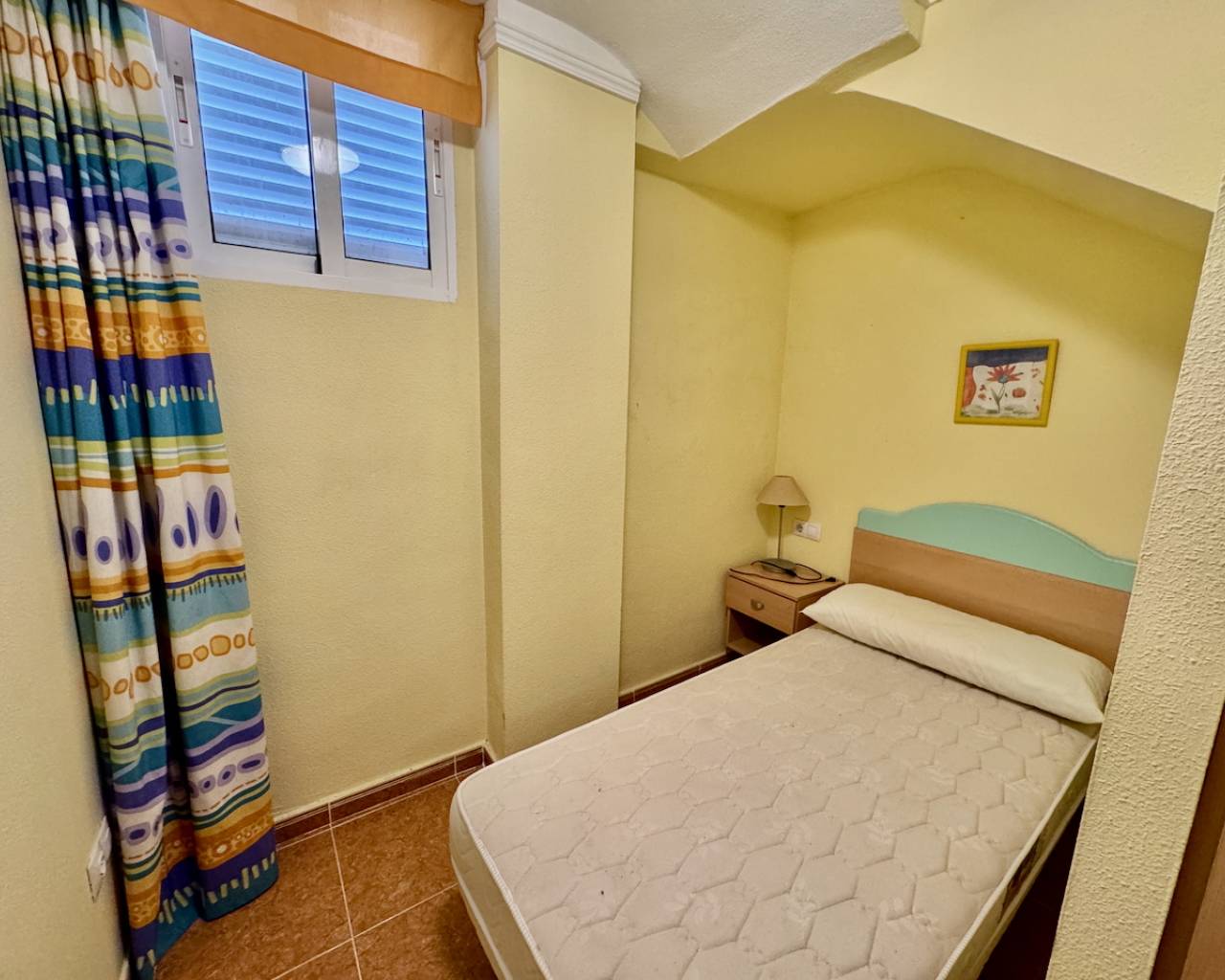 Flooded with natural light thanks to its south-facing orientation, the apartment offers a warm and inviting atmosphere throughout the day. On the first floor, an open-plan living and dining area flows seamlessly onto a generous private terrace with pool views—perfect for relaxing or entertaining. A full bathroom is also located on this level. All five bedrooms are situated on the lower floor, providing privacy and tranquility, while residents can also enjoy the communal pool and rooftop solarium.
