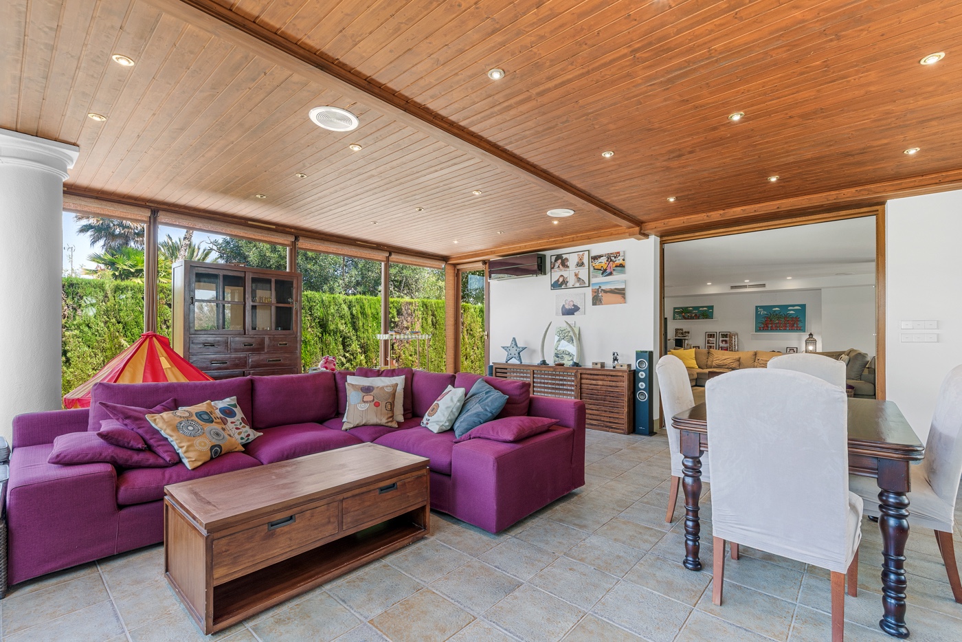 The property has spacious and well maintained outside areas. Before entering the property, you will find a big porch with lots of shade for the warm summer days. The garden is beautiful, and here you will also find a fully equipped outside kitchen.