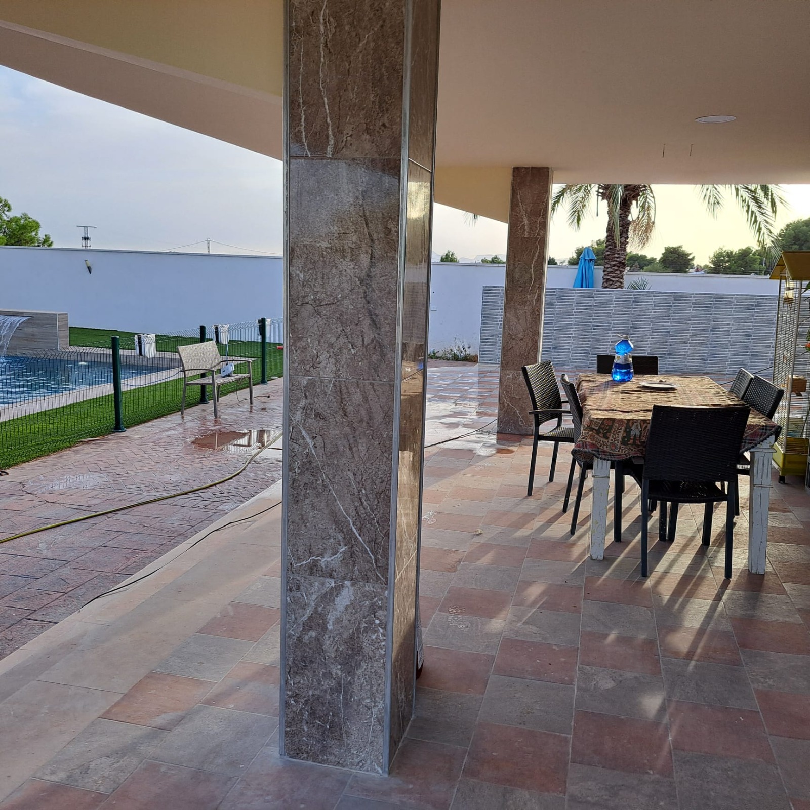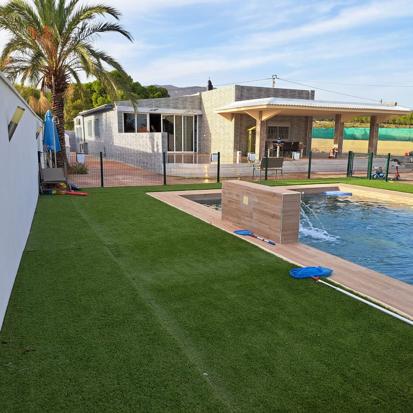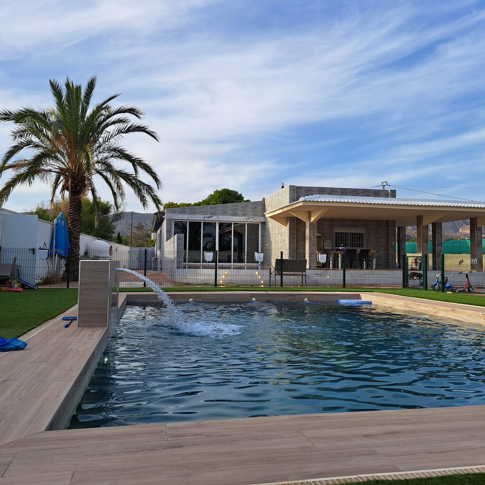house has a large covered terrace overlooking the private pool. The plot is