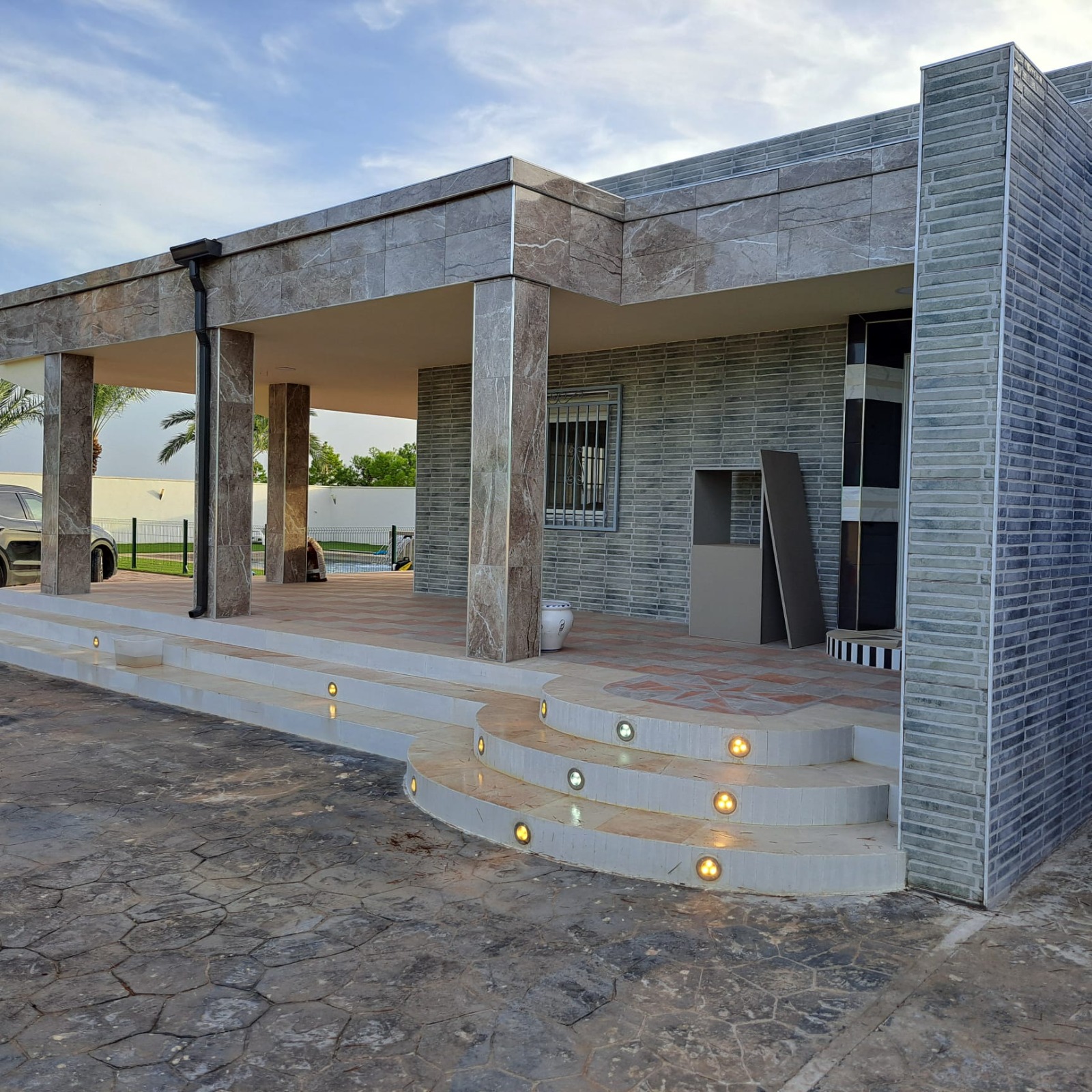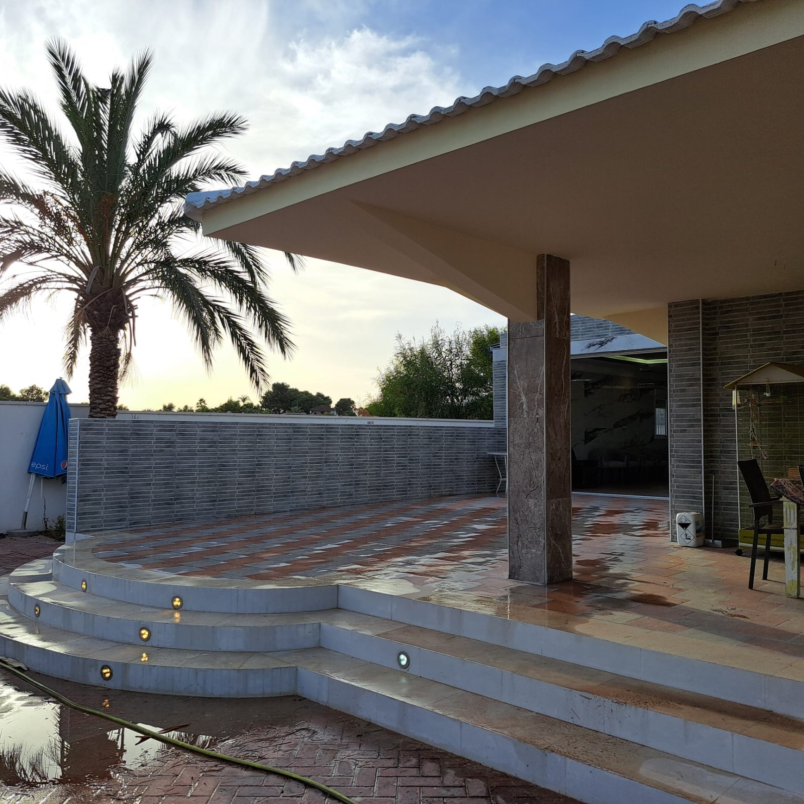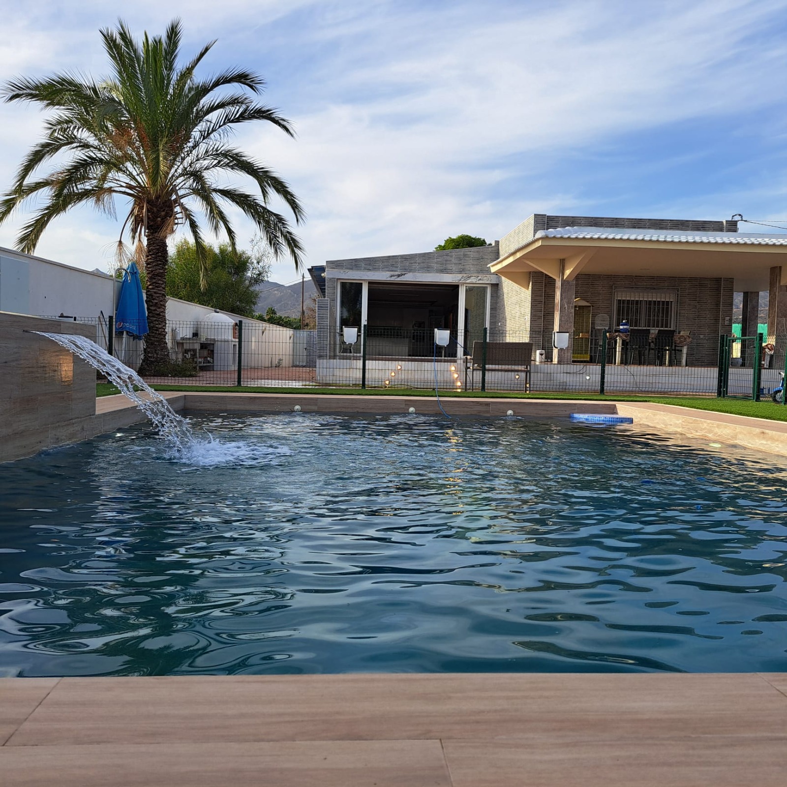 house has a large covered terrace overlooking the private pool. The plot is
