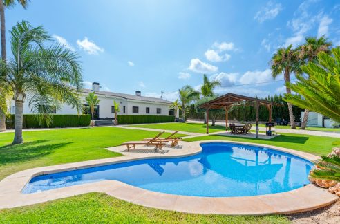 This is a huge 6 bedroom renovated luxury property for sale close to Guardamar del Segura. It is a 5 minute drive from Guardamar town. It is surrounded by farmers fields and sits on a large 4.000m2 plot with parking for 6 cars.